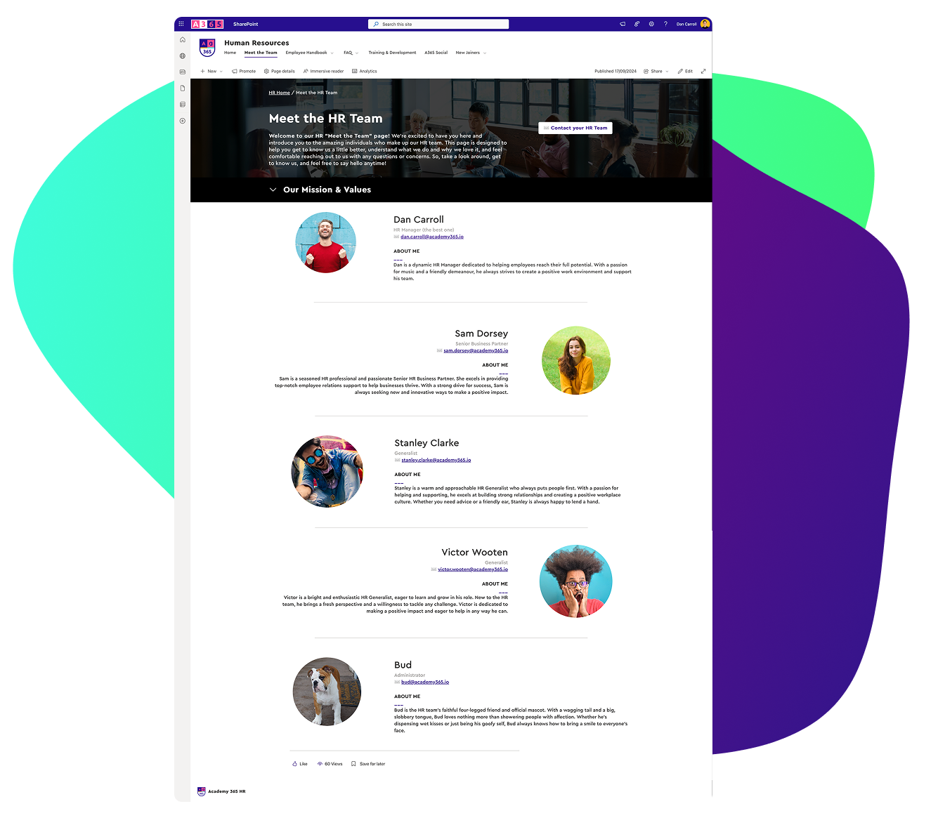 In this module, we’ll create a “Meet the Team” page to introduce your department to the rest of the company.